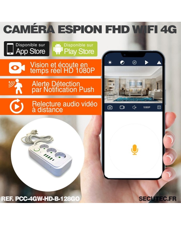 La micro caméra 4G/Wifi dans une multiprise est simple d’installation, une documentation et une application (iOS et Android) en français vous est fournie.