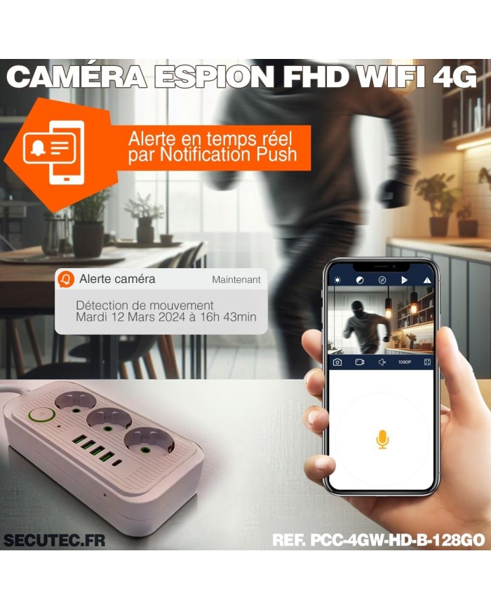 MULTIPRISE CAMERA WIFI/4G HD 1080P